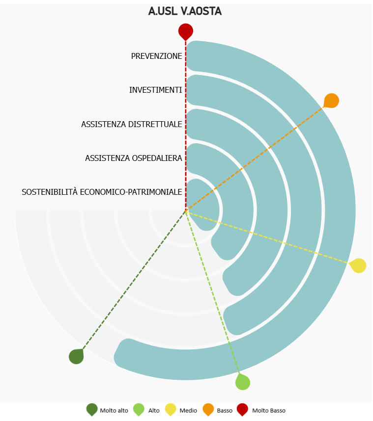 Performance in miglioramento e risultati sopra la media in tutte le aree per l’Azienda USL Valle d’Aosta nei dati 2024 diffusi da Agenas (Agenzia nazionale per i servizi sanitari regionali) nell’ambito del “Forum sul Risk Management” ad Arezzo, relativi al Modello di Valutazione delle Performance delle Aziende Sanitarie e Ospedaliere italiane.